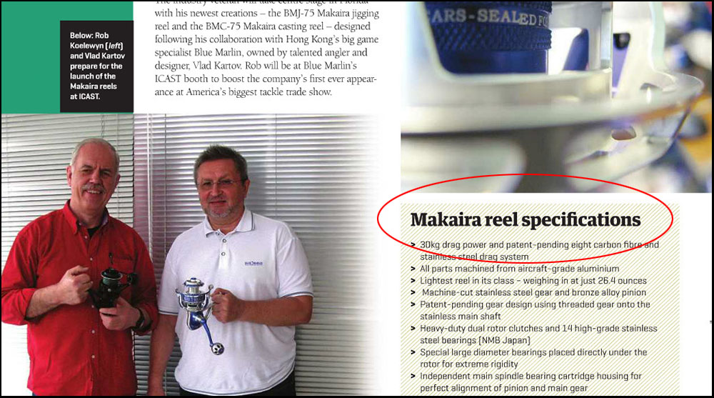![]() Yep. Blue Marlin initially marketed it in shows and magazines under the "Makaira" name, but it turned out that Okuma owns the trademark to the name, and upon request from Okuma Blue Marlin changed it to BMC/J. I don't believe they intended to copy Okuma's model naming. "Makaira" is the Latin name of the Atlantic Blue Marlin fish, which might be where "Blue Marlin" company got the name.