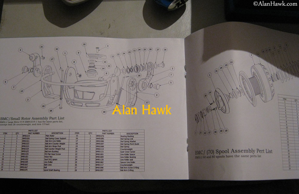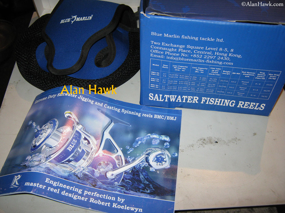There is a lot of confusion about what this reel is and what it isn't. Blue Marlin is a Hong Kong/Russian retailer of fishing gear whose spinning reels are usually rebranded OEM reels, but the BMC/J reels examined here are proprietary designs and not rebranded shelf reels. Their story goes like this; years ago Robert Koelewyn -credited for creating Van Staal and ZeeBaas brands- was designing two reels to be released bearing his own brand "RK Sports", one was a surf reel, and the other was his first dedicated offshore reel. Eventually, instead of releasing them under his own name, Zebco picked up the surf reel and released it as the Van Staal VR with a few tweaks, while Blue Marlin company, who became a joint owner of RK sports, released the offshore reel as the BMJ (Jigging - low speed), and BMC (Casting - high speed), both models in three sizes 60, 70, and 80. Of course that is the short version of the story as the surf reel had been through previous reincarnations under other names before ending up as the Van Staal VR, but my focus today is on the offshore reel which has only had one previous name;