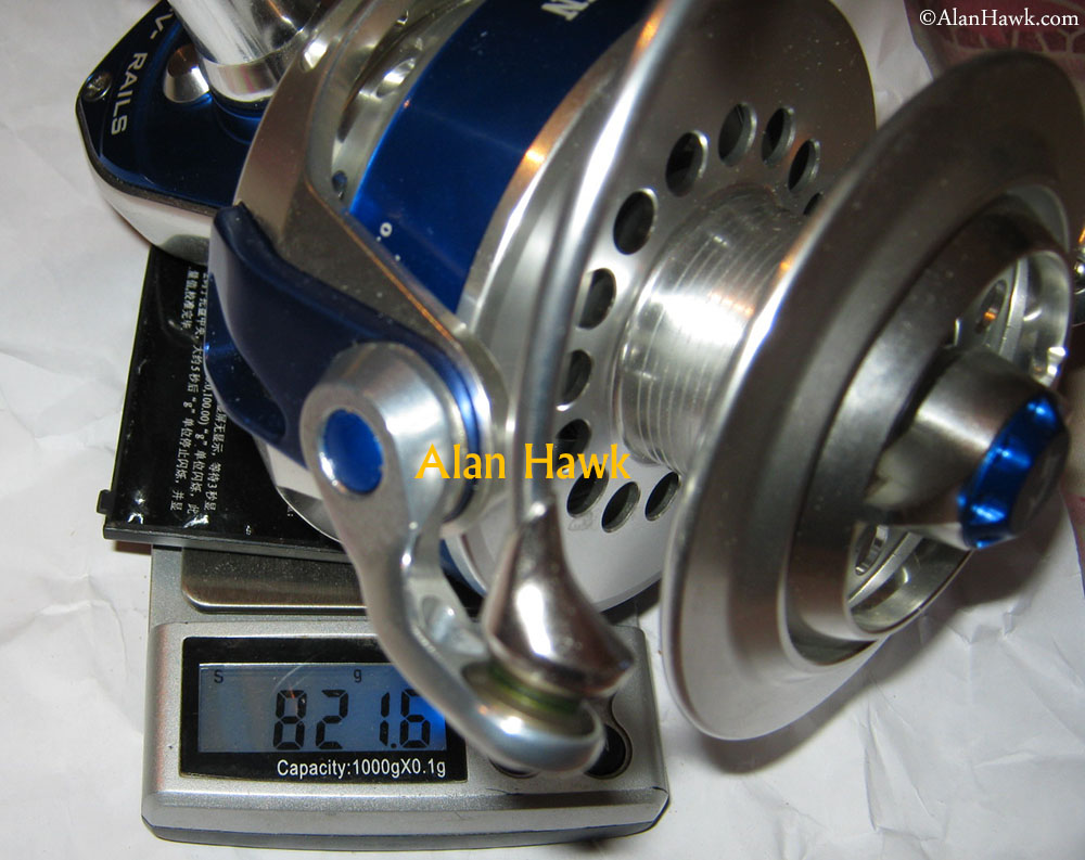 ![]() ![]() In reality though the 60 is 754 grams (26.6 oz) and the 80 weighs 821 grams (29oz). The tray in the photo under the 80 was of course accounted for and the scale zeroed with it. I have not tested the 70 size but one can safely assume that the listed weight for that size will be off as well. The wrong weights are featured everywhere including on the official website at the time of writing, so these need to be changed. To put the actual line capacity in familiar terms, the 80 holds about 92% of what a 10K Shimano Spheros SW or Saragosa SW holds, and the 60 holds about the same as 6K Spheros SW or Saragosa SW. The capacity/weight ratio for the Blue Marlin reels therefore is not satisfactory. While the spools are wide and deep, they lack in height, which hurts capacity.