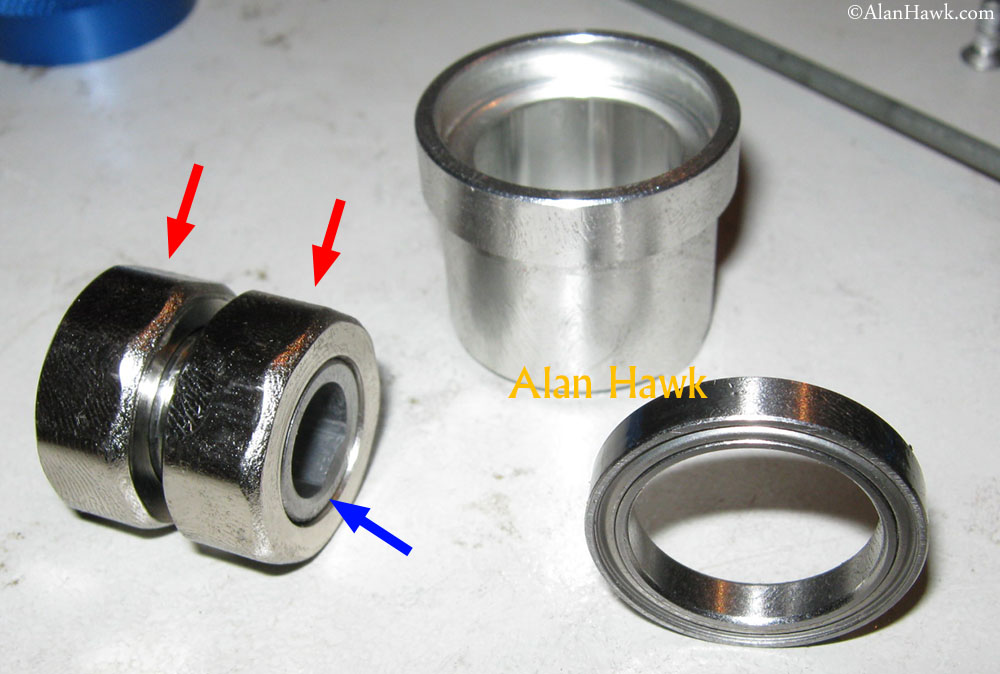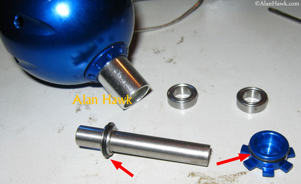 ![]() The knob is sealed on both ends (red arrows), and runs on two bearings that remained in top condition throughout the testing.
