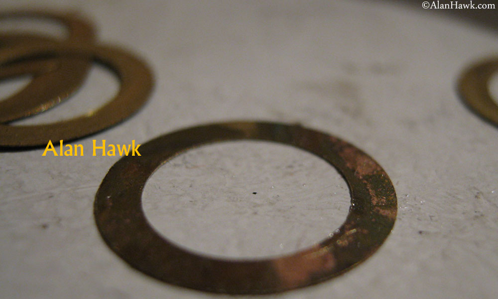Some of the brass shims of the drive gear were beginning to oxidise and build a layer of corrosion that's thicker than standard tarnishing. Gave it a quick cleaning and a layer of grease for protection.