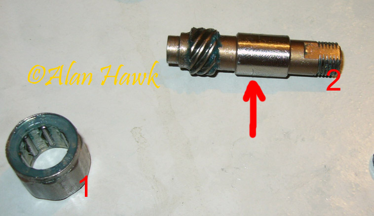 ![]() #1 is the fore ball bearing the pinion runs on, #2 is the one way anti-reverse clutch, and #3 is the main pinion/rotor ball bearing.